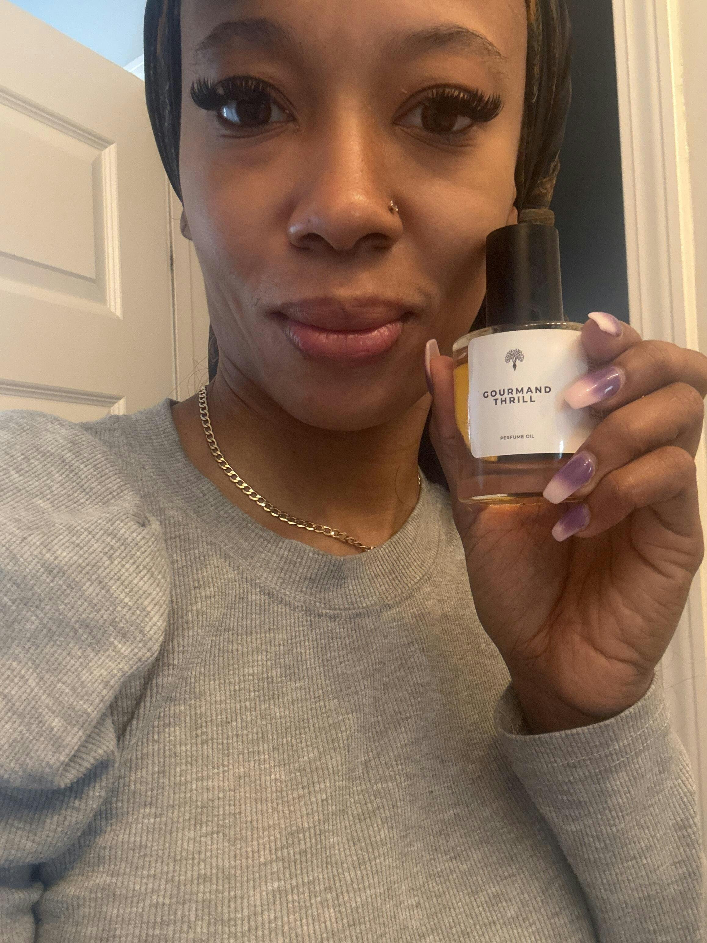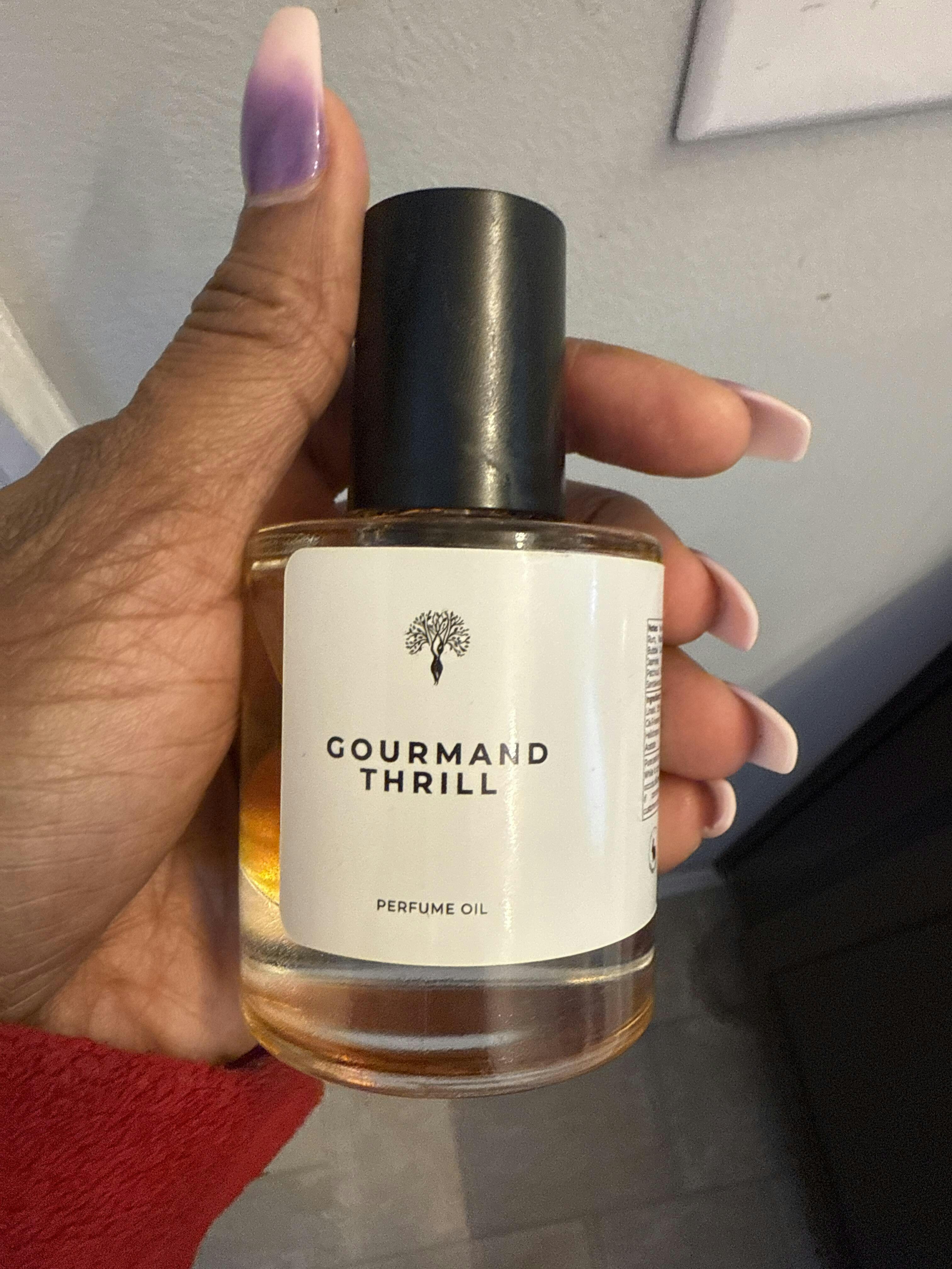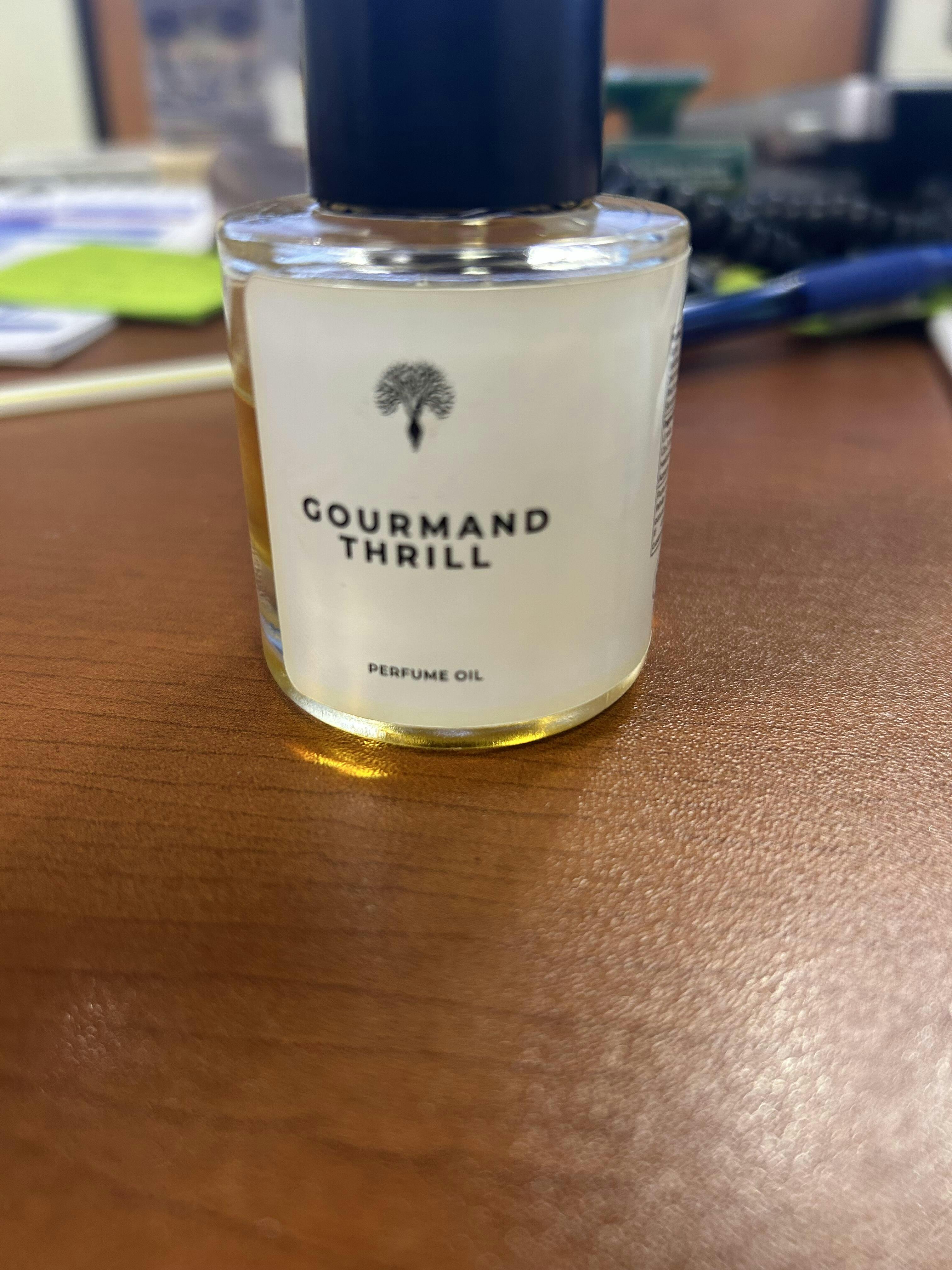 The perfume oil has creamy vanilla, juicy pear, and marshmallow wrapped in caramel and soft woods — a pure dessert fantasy in a bottle. Expect Gourmand Thrill perfume oil to open with a mouthwatering mix of vanilla, pear, and rum, instantly creating a cozy, candy-like warmth. The heart bursts with bubble gum, jellybean, and jasmine – simply nostalgic. As it settles, creamy sandalwood, tonka, and patchouli emerge beneath layers of sugar and marshmallow, giving the scent its irresistible depth and addictive sweetness.