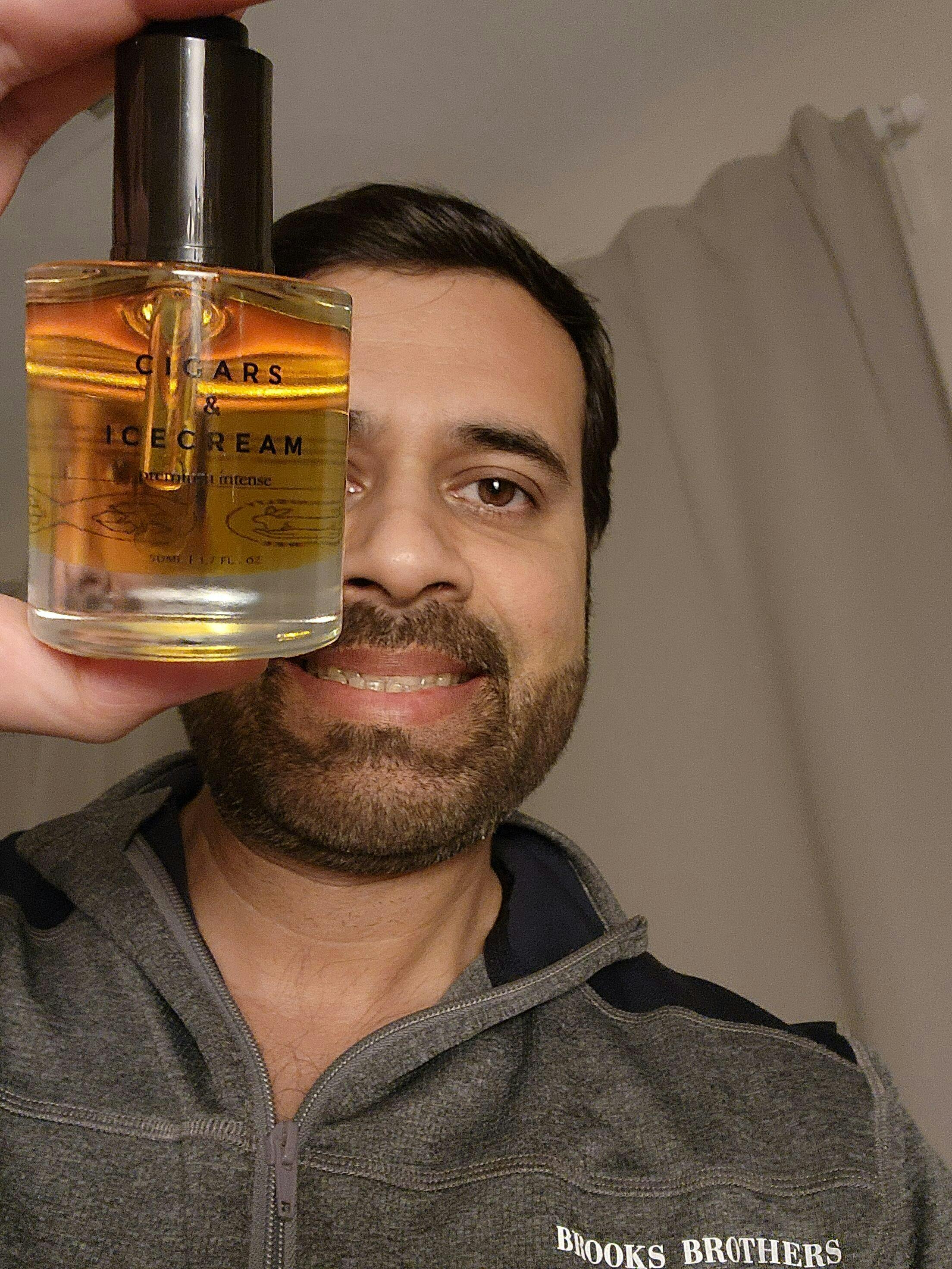 It is an elevated, luxurious, and more potent version of its original counterpart i.e., Cigars & Icecream, intensifying the bold, indulgent qualities that make it one of a kind. The smoky depth of tobacco leaf opens the scent, enhanced by spicy notes that immediately captivate the senses. The heart is rich with the creamy sweetness of vanilla and cacao, while tonka bean adds a warm, nutty sophistication. Dried fruits convey subtle sweetness but balance this with woody notes such that the grounding warmth seems alive. In a nutshell, it is an intensified experience: sophisticated, sensual, and powerful, that true elixir of indulgence.